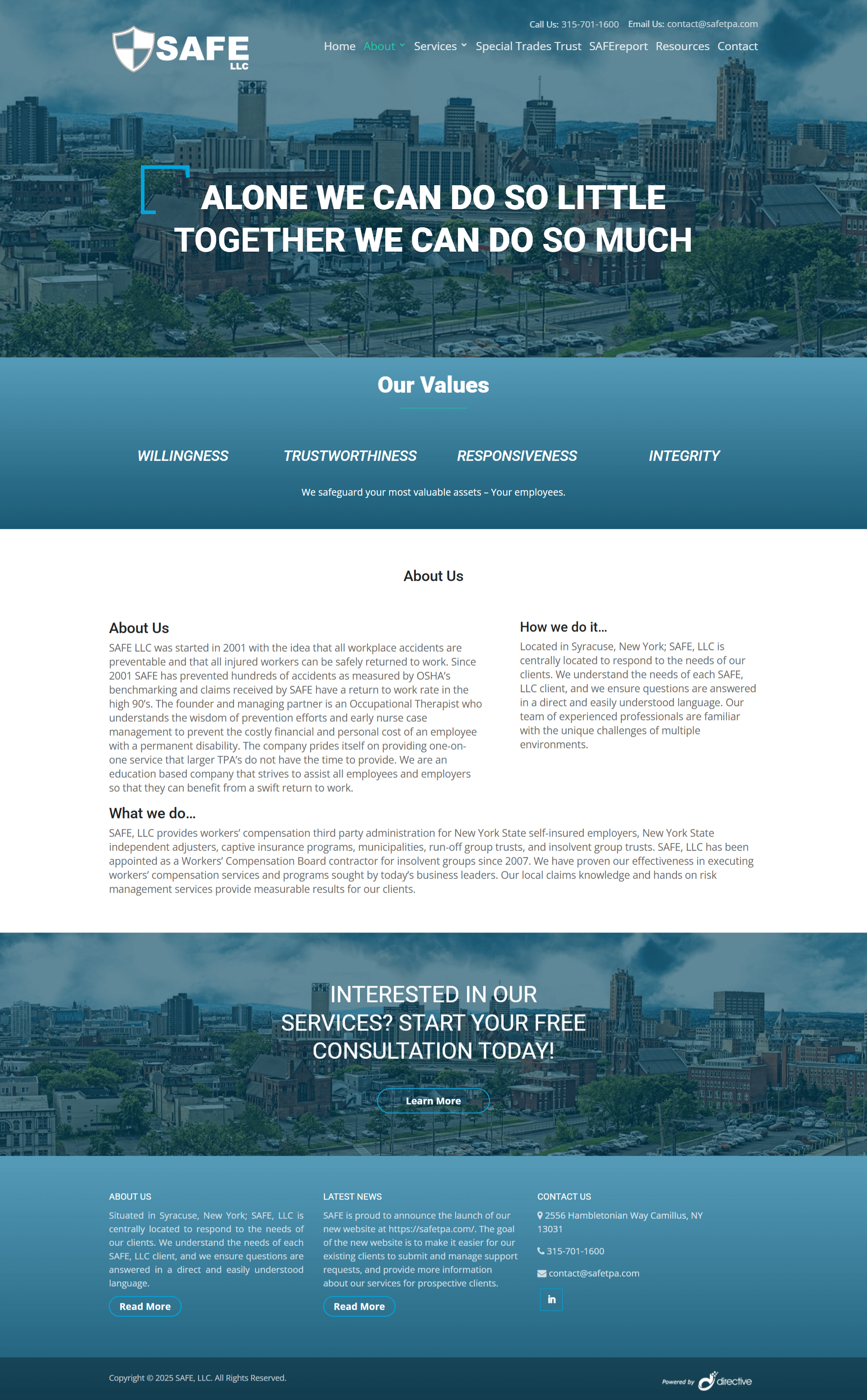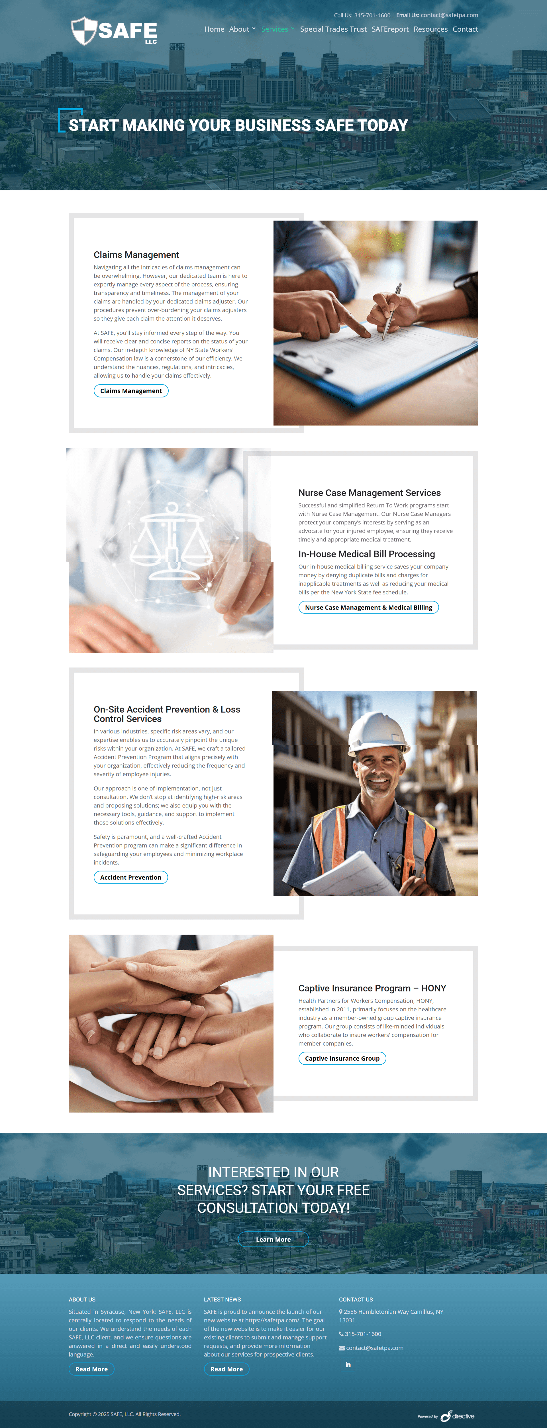 SAFE LLC, founded in 2001, offers workers’ compensation services to a diverse clientele throughout New York State. Our commitment to personalized, one-on-one service has resulted in remarkable cost savings for our clients.